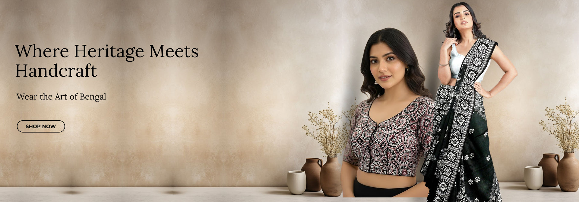 Born in the artistic heart of Santiniketan, we carry forward its legacy of Rabindrik culture, handloom craft, and natural elegance.